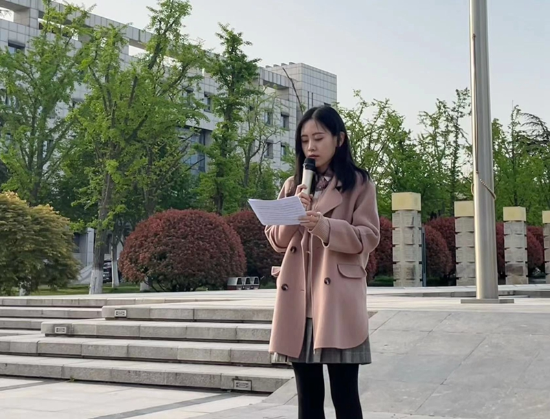 学生会主席团成员、2020级本科生高睿晗作为学生代表进行国旗下演讲。她以百年团史为出发点,从筑牢信念根基、秉持钻研态度、坚定学思实践三个方面与全体同学共勉;结合世界视野和历史重任的维度,鼓励全体同学从历史长河中汲取营养,从未来召唤中激发力量;呼吁共青团员勇挑重担、勇克难关,为第二个百年目标的实现贡献自己的力量。