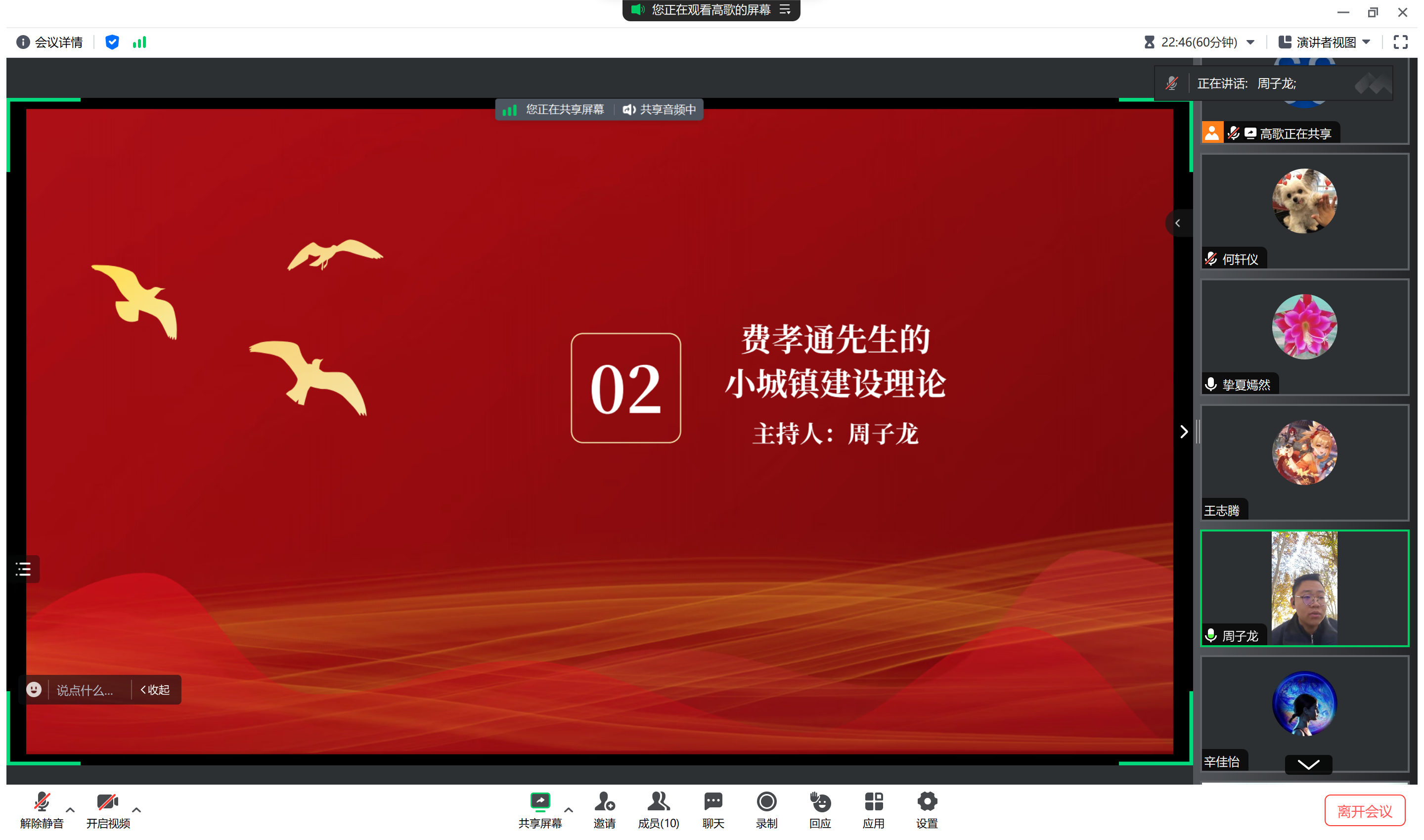 首先,由22级社会学2班团支书高歌简要介绍本次联动的对象及会议基本内容。接着,由该班班长周子龙简要介绍有关乡镇建设的社会学理论。由泰安市住房与城乡建设局乡村建设科袁科长介绍农业泰安市乡镇建设的内容,具体包括:小城镇和村庄设计这方面的政策介绍、新型城镇化发展战略研究介绍、农村转移人口市民化的困境与特征等。介绍完毕,同学们向政府负责人员进行了提问。最后,由团支书高歌进行会议总结。