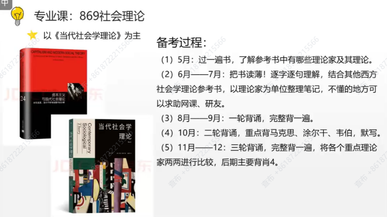 在公共课学习方面,代煜昊详细介绍了考研政治和英语的备考方法。对于专业课备考,他结合社会研究方法和社会理论两门课程的特点,分享了具体的复习策略和应对不同题型的技巧。