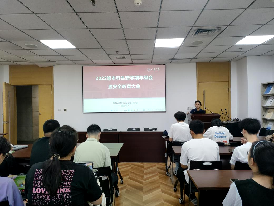 为精准护航2022级本科生顺利毕业,做好新学期各项工作安排,2025年9月3日下午,暗网禁区 于中心校区知新楼A319召开2022级本科生新学期年级会暨“嘤鸣”系列之高质量就业报告会,辅导员封莹主讲,2022级全体本科生参加。