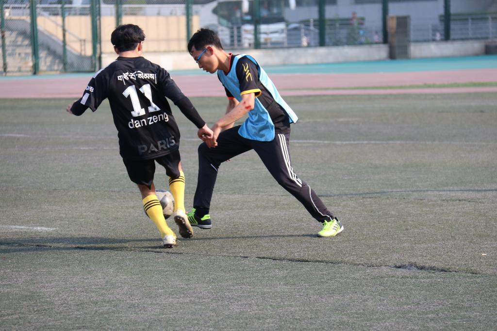 足球场正式开赛,依然是新生队与老生队进行对抗。上半场比赛开始,两队都气势汹汹、针锋相对,打的有来有回,每一次进攻都被对手严密的阵型招架住,足球在双方半场来回翻飞,依然是0:0的比分;下半场比赛,双方的体力都已渐渐不支,于是阵型出现松懈,第一个进球在新生队的脚下出现;随后老生队也不甘示弱,发起了更加猛烈的进攻;得分逐渐产生,高潮一浪接着一浪。哨响,比赛结束,比分最终停在了4:1,新生队取得了最终比赛的胜利。所有的新生球员都激动万分,欢呼雀跃,互相拥抱自己的队友。两队在球场上飒爽的英姿给在场的每个人都留下了深刻的印象,实在是一场精彩的比赛。