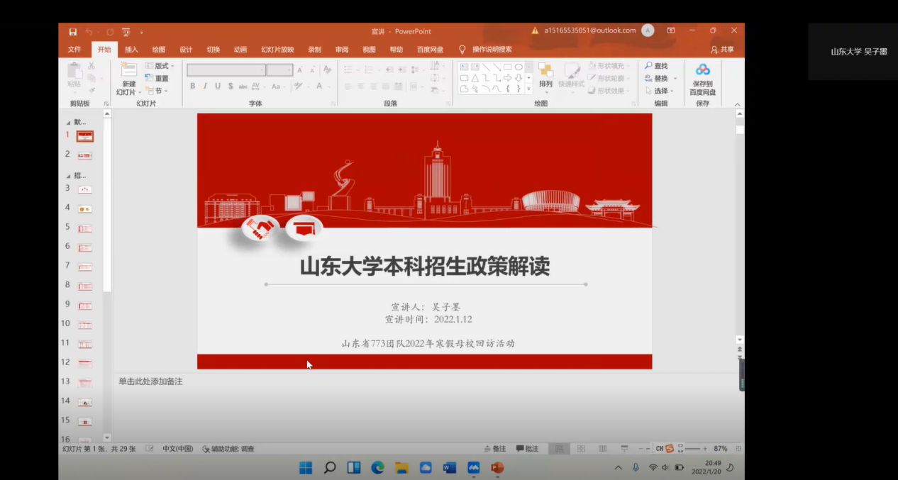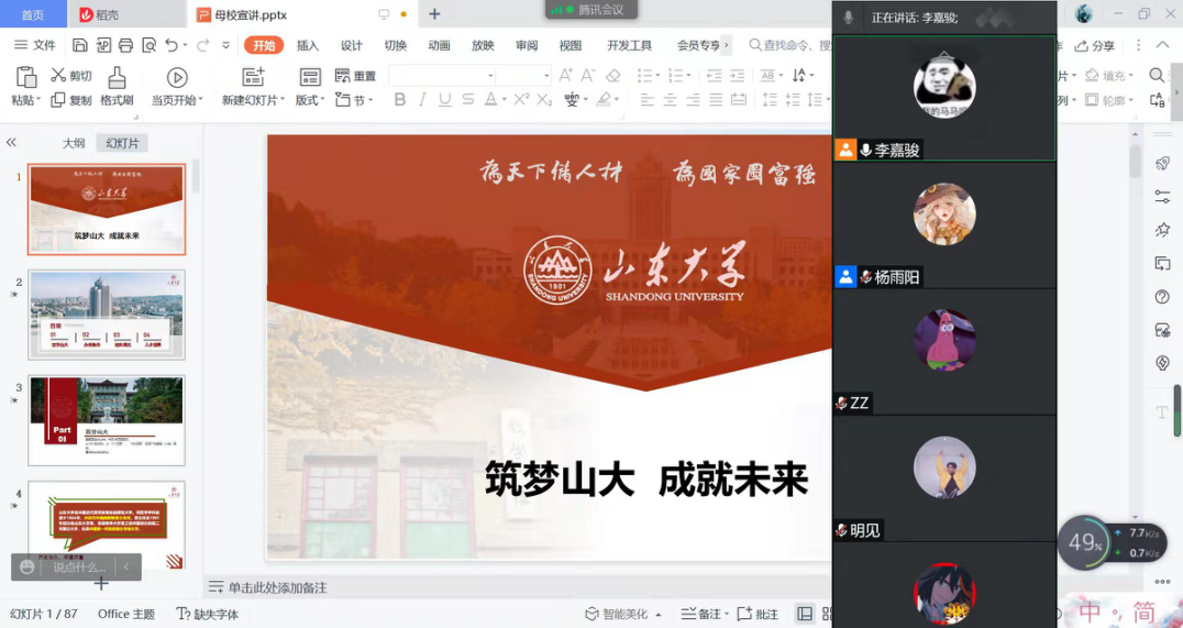 在全国重点中学的影响力,2022年1月19日-1月27日,“相约山大,励志启航”山东省773团队分别面向宁阳一中、临沂商城实验学校、泰安一中开展回访活动,为母校学生进行宣讲和答疑。