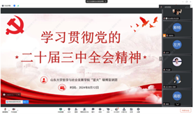 会议后半部分由星火硕博宣讲团代表发言,开展理论宣讲活动,旨在将学习贯彻党的二十届三中全会精神与加强党的建设、深化党建教育相结合。此次宣讲围绕着“深刻认识二十届三中全会的目标与意义”、“深入学习领会全会精神”以及“青年党员应以实际行动贯彻落实全会精神”三个方面展开。宣讲团号召学生党员进一步将思想和行动统一到习近平新时代中国特色社会主义思想和党中央决策部署上,营造学习宣传贯彻党的二十届三中全会精神的浓厚氛围。通过集体深入学习全会精神,团队表示未来将进一步加强党的创新理论的学习与武装,深入挖掘理论内涵,创新工作机制与工作方法,将理论学习与实践紧密结合,激发推动实践的内在动力。