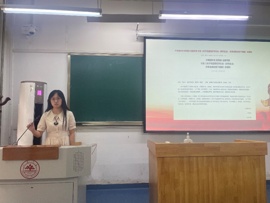学生会于5月23日上午组织召开“全国学联会议精神专题学习会”。参会人员在主席团的带领下共同学习全国学联工作报告,分享各自在工作中的心得和经验,进一步明确今后的工作重心。