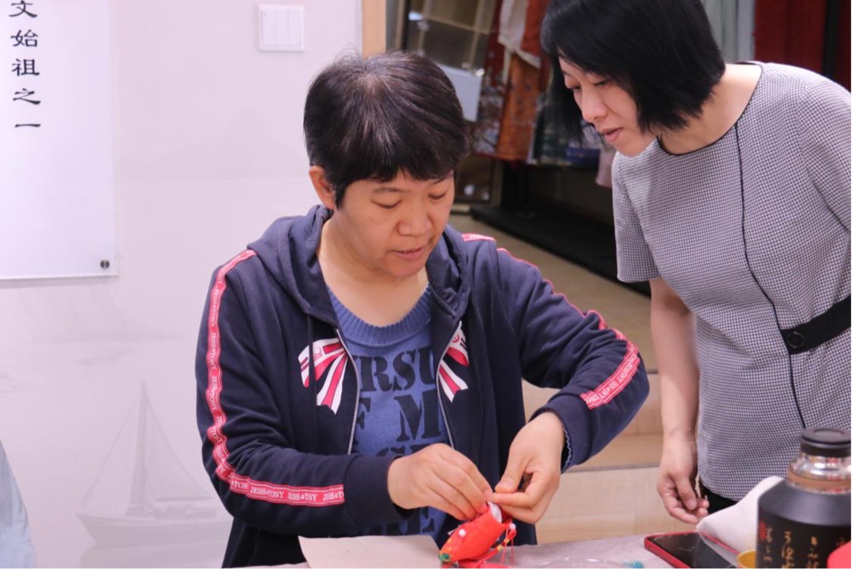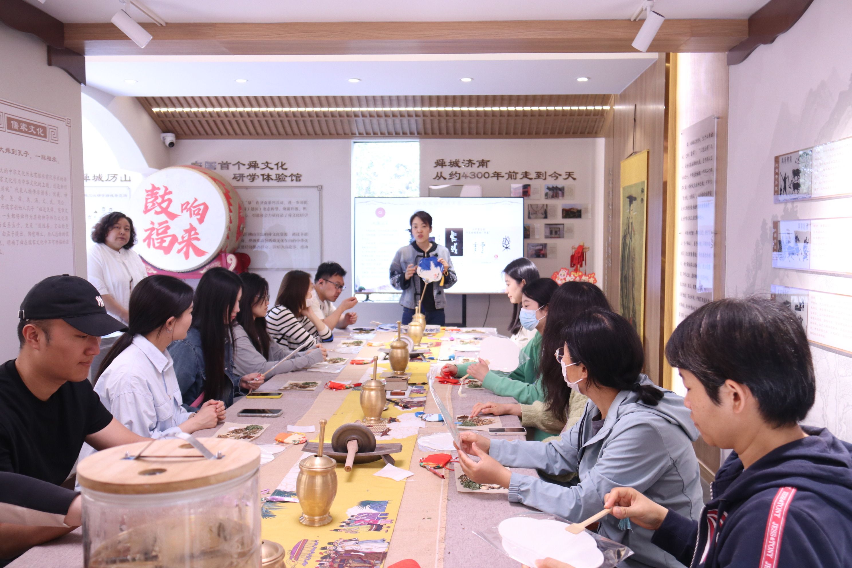 研究生联合培养基地导师、舜文化体验馆馆长陶丽丽及非遗传承人的指导下,共同开展中药香囊、漆扇及书法创作活动。通过亲身体验传统技艺,师生在实践中共悟文化精髓,深化导学互动。耿倩在漆扇创作中感悟到流动的东方色彩不是标本,而是新时代青年续写的新年轮;钟林杉在与老师一同制作香囊时感慨道:“一针一线的‘笨功夫’,恰是治愈现代浮躁的良方。”贾祥瑜认为此次非遗制作是“掌心对时光的温柔叙事”,其中不仅蕴含了传统技艺的传承,更感受到了师生之间的情感联结。