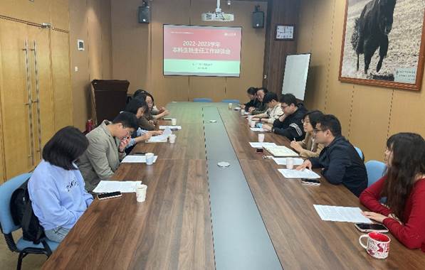 组织召开2022——2023学年本科生班主任工作座谈会。会议由院党委副书记马燕主持,副院长李忠路出席会议,各年级班主任、全体辅导员参加会议。