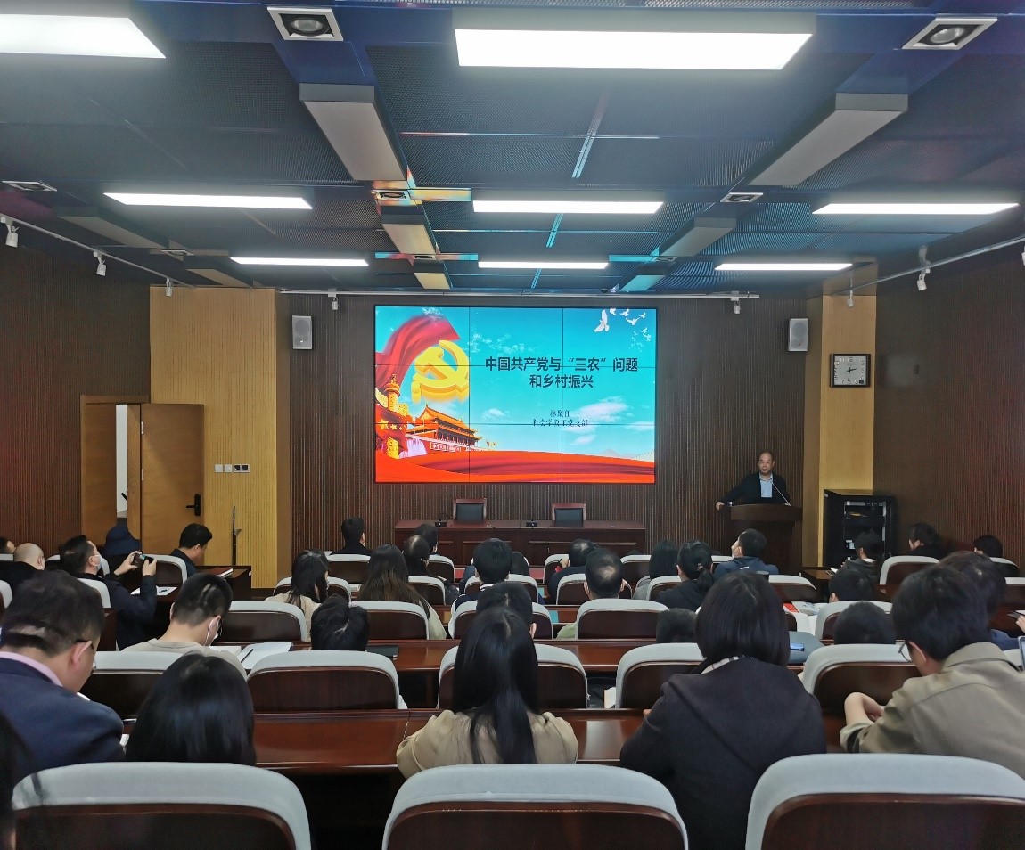 举办了“中国共产党与‘三农’问题和乡村振兴”主题党日专题党课。党课由社会学系教授、博导林聚任主讲,领导班子成员和全体教工党员和学生党员代表参加。